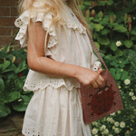 Ručně vyrobená taška přes rameno s úzkým popruhem a korálkovou beruškou je rozkošným doplňkem od Konges Slojd, který doplní letní styling malých objevitelů.
