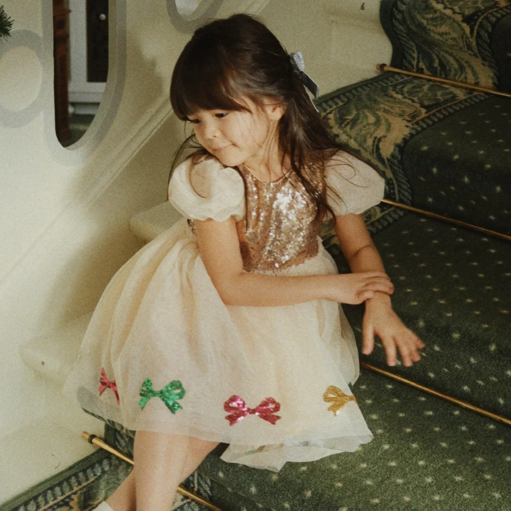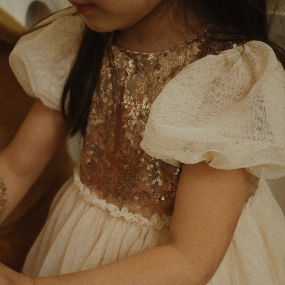 Dětské šaty s flitrovým vrškem a vrstvenou tylovou sukní od Konges Slojd.