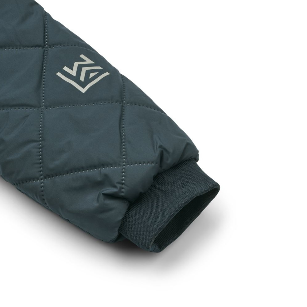Společnost Liewood dbala i na praktické detaily: látka je odolná proti vlhkosti a reflexní prvky zvyšují viditelnost po setmění.