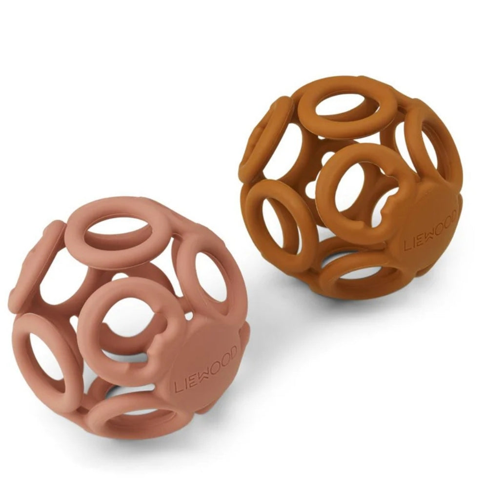 Liewood dětské kousátko ve tvaru kuličky Jasmin Tmavá růže/hořčicová směs 2 ks