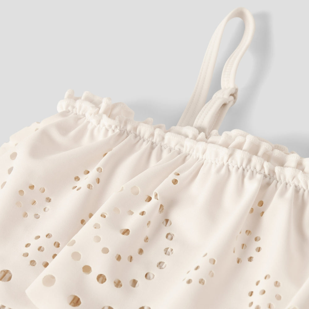 Tyto plavky od Lil' Atelier v sobě spojují styl, pohodlí a péči o životní prostředí. Jednodílný střih v jemném krémovém odstínu je určen pro dívky, které milují hrátky ve vodě a letní dny plné sluníčka.