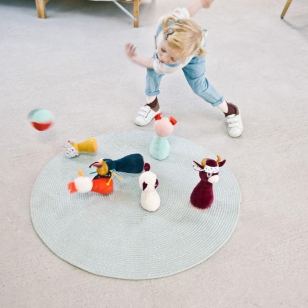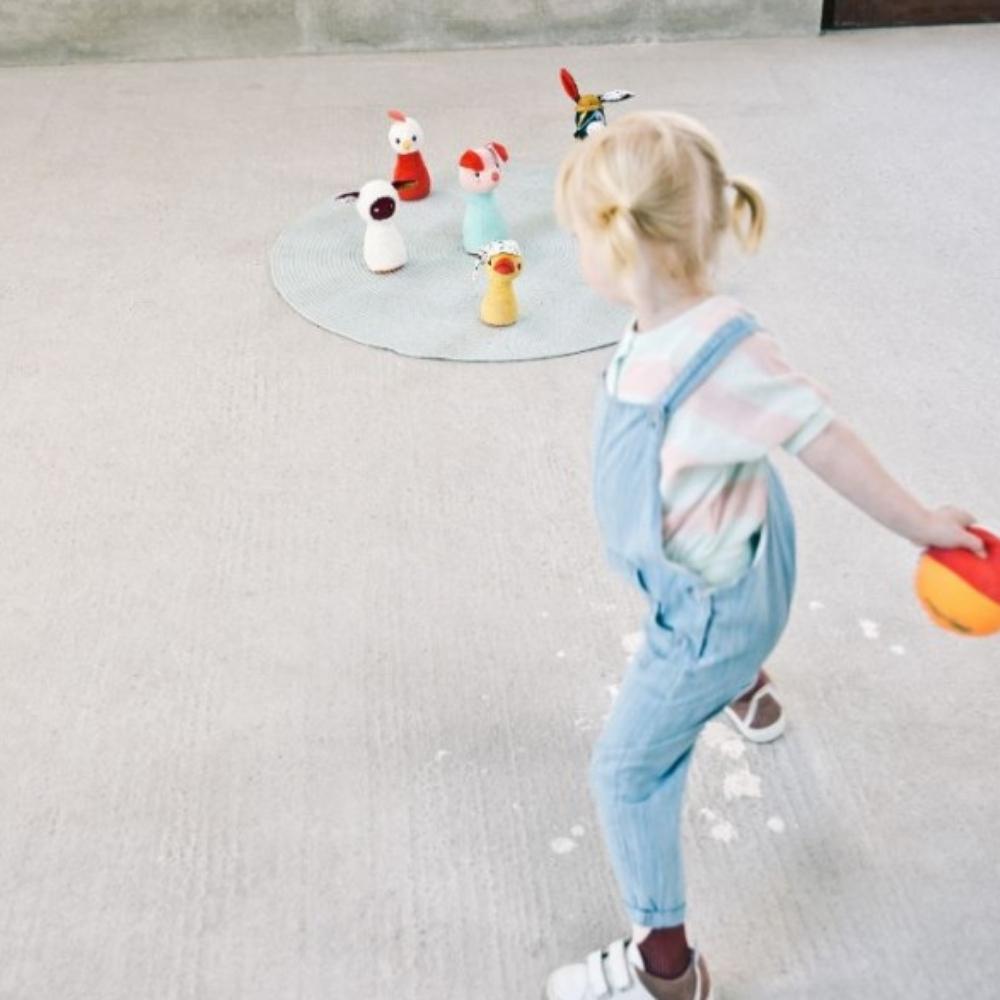 Zvonková koule na kuželky z nové kolekce Farm belgické značky Lilliputiens je netradiční rozvojová hračka pro malé děti.