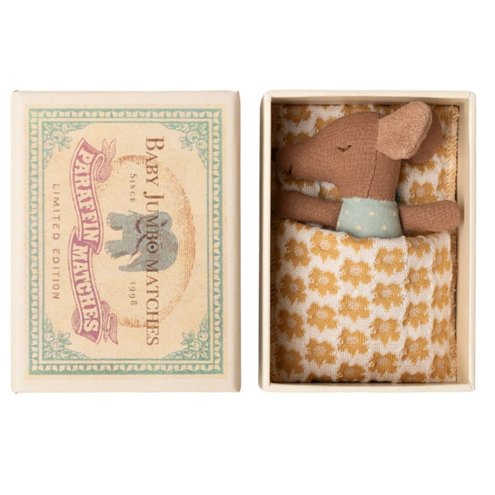 Maileg Spící myš v krabičce od sirek Modrá