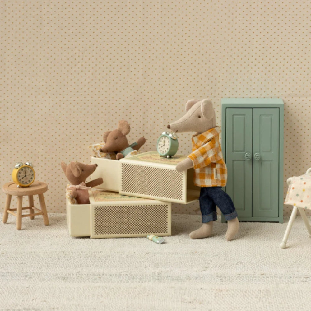 Měkké látky použité na oblečení a povlečení zdobí jemné vzory a krásné barvy, díky nimž je každá myška Maileg jedinečným společníkem pro dětská dobrodružství.