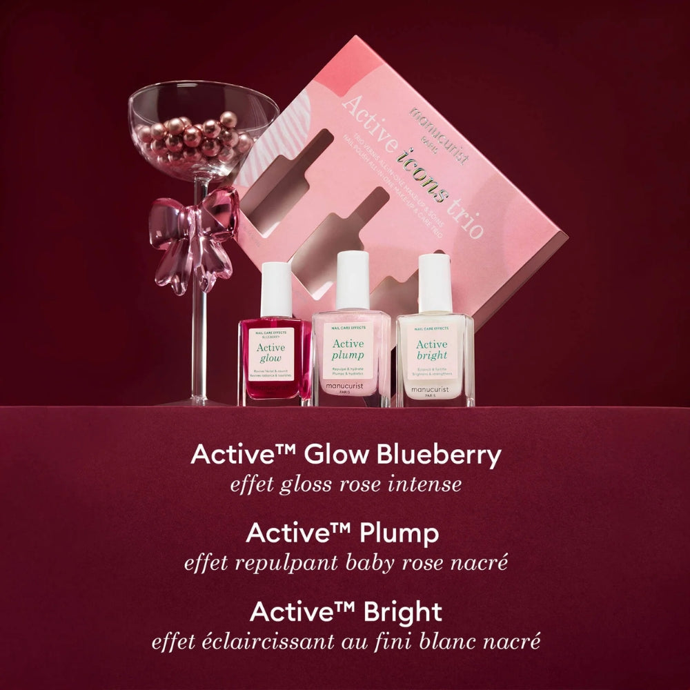 Sada obsahuje lak na nehty Active™ Glow Blueberry, který poskytuje zrcadlový lesk a obsahuje 77,5 % složek přírodního původu.