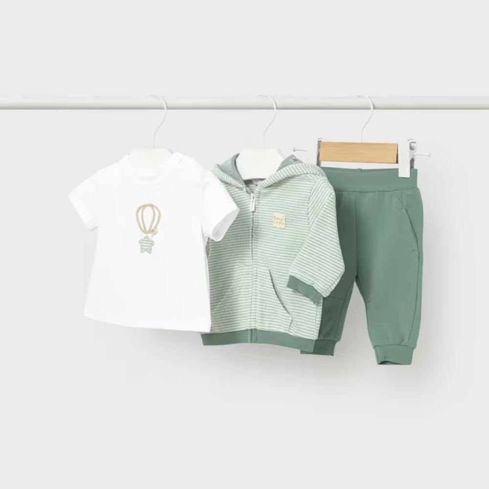 Tato souprava pro holčičku od společnosti Mayoral se skládá ze tří dílů, které zajišťují pohodlí a styl od prvních dnů života.