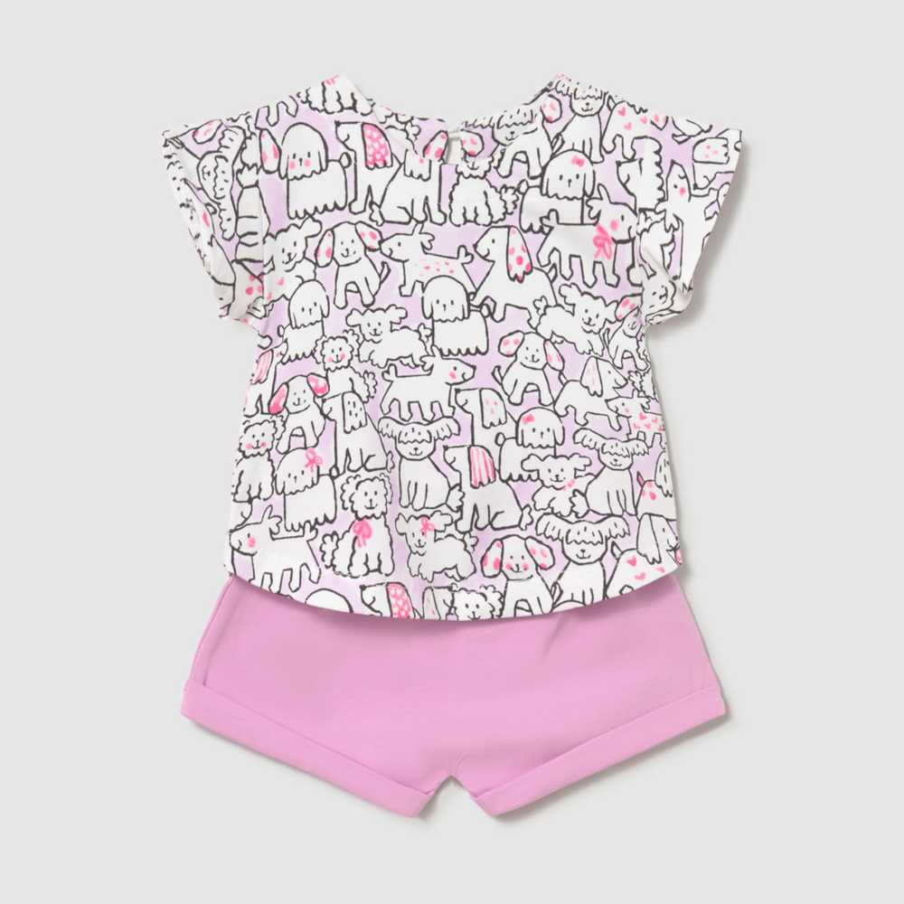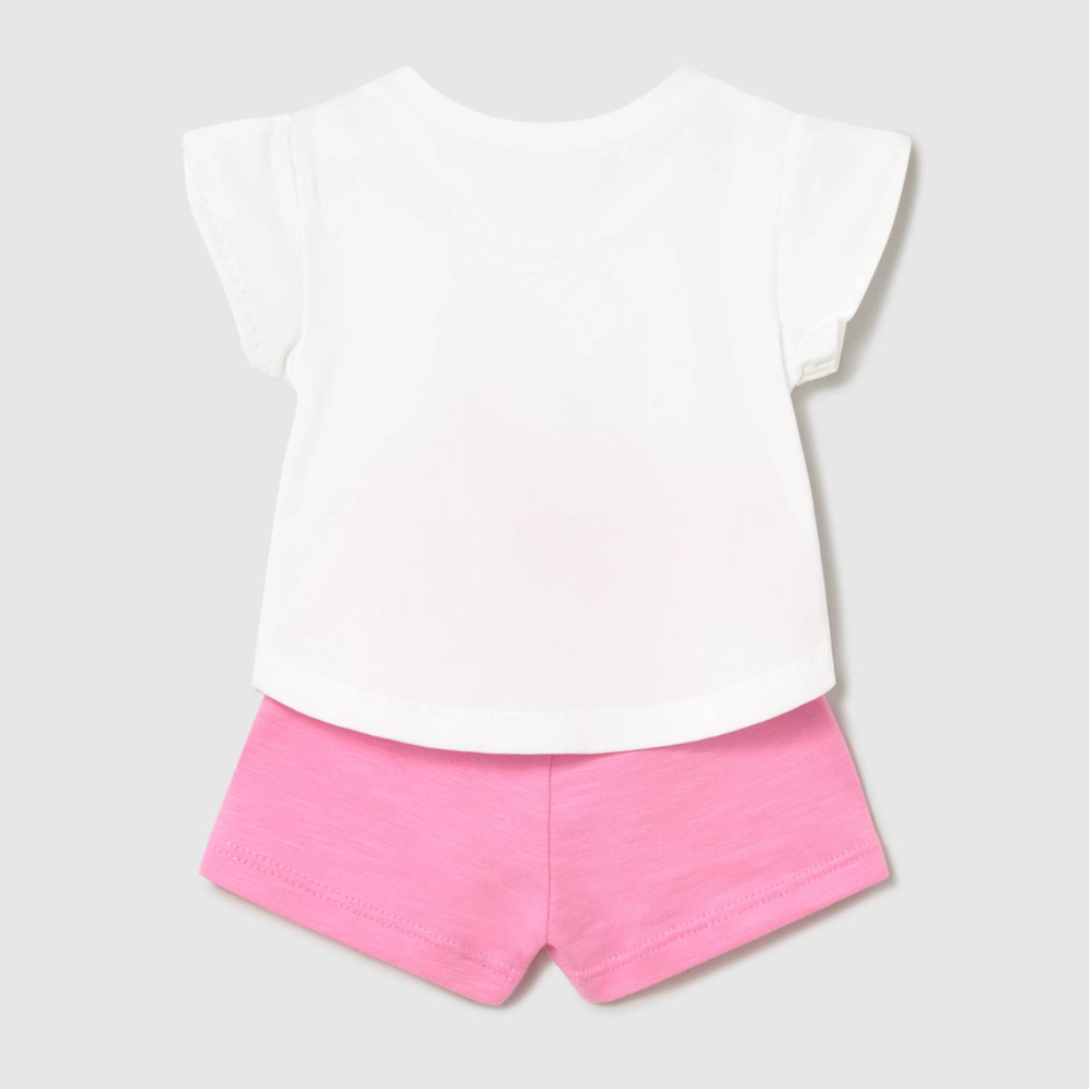 Tato kojenecká souprava se skládá ze čtyř dílů, včetně dvou triček a dvou párů šortek, které lze libovolně kombinovat.