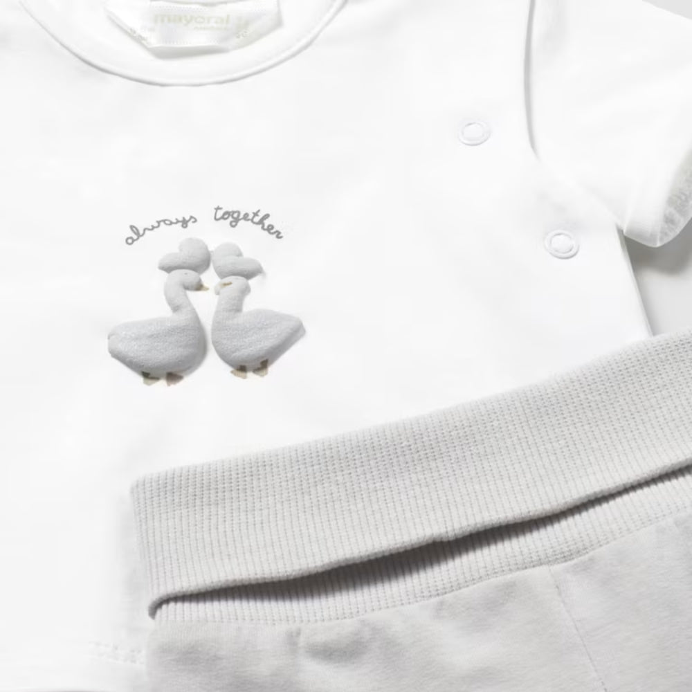 Díky roztomilému motivu malé husičky vypadá novorozenecká souprava obzvlášť měkce a dětsky.