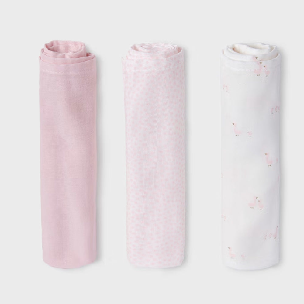 Mayoral Dětské gázové pleny sada 3 ks Baby Pink