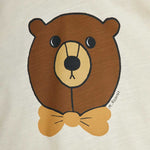Je udržováno ve světle krémovém odstínu a zdobí ho velký potisk přátelského medvěda v motýlku, který přitahuje pozornost a dodává celkovému vzhledu jedinečný nádech.
