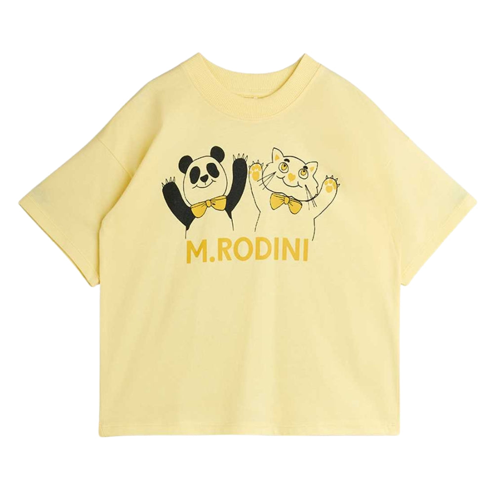 Mini Rodini Dětské tričko Panda a kočka žluté barvy