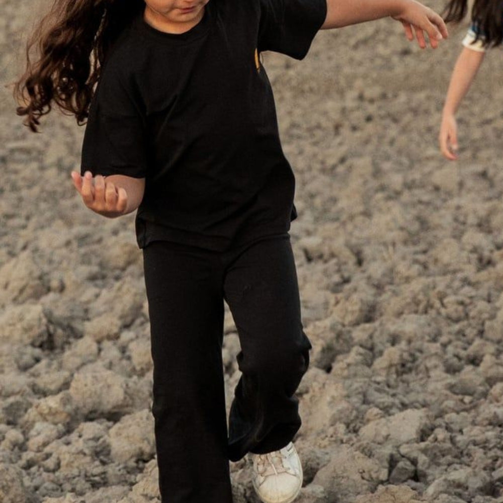 Mini Rodini Kalhoty pro dívky do zvonu Planet Black