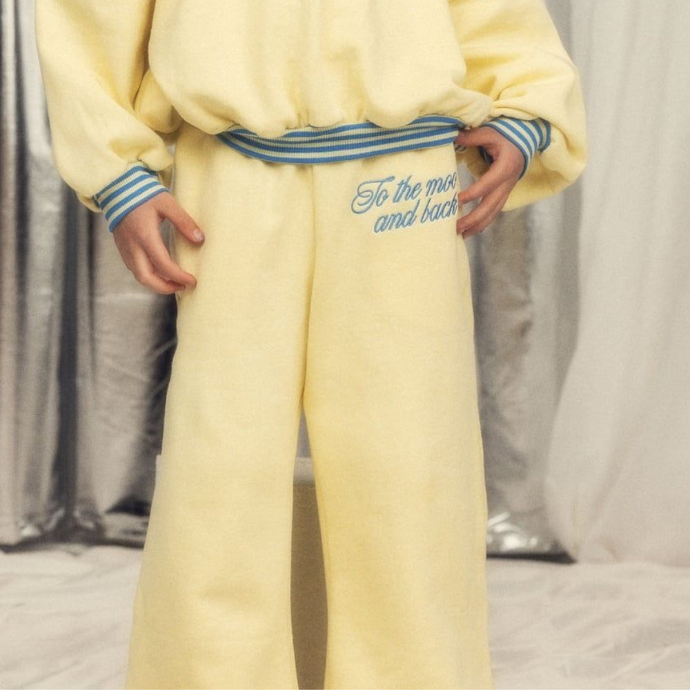 Na nohavicích je vyšitý nápis To the moon and back, který dodává celkový šarm a poutavý vzhled.