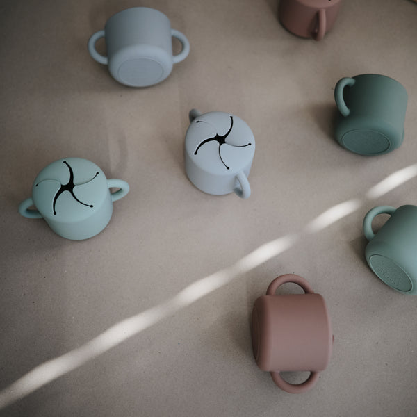 Hrneček Mushie Non-Snack Cup je jedinečná nádoba pro děti, která podporuje zábavu a samostatnost při jídle.
