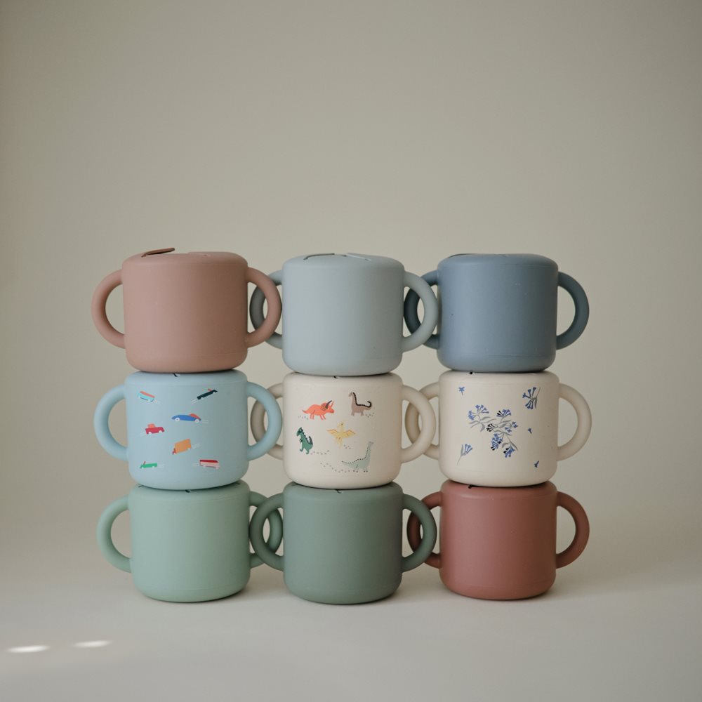 Hrneček Mushie Non-Snack Cup má také dvě pohodlná ouška, která může vaše děťátko snadno držet ve svých malých ručičkách.