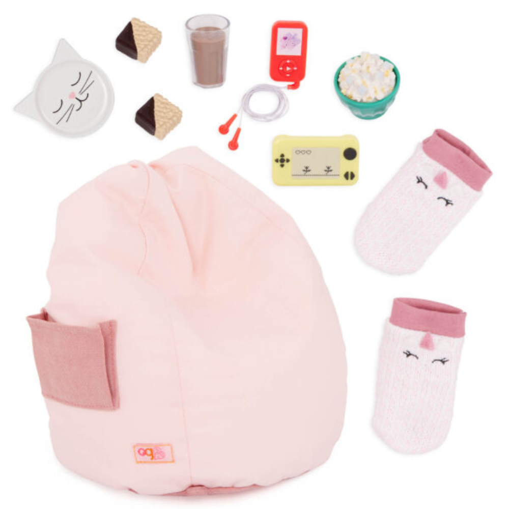 Sedací vak se bude dobře hodit ke klidnému čtení, poslechu hudby nebo odpočinku po intenzivní hře - stejně jako v "dospělém" obývacím pokoji. Vhodný pro panenky Our Generation s výškou 46 cm.