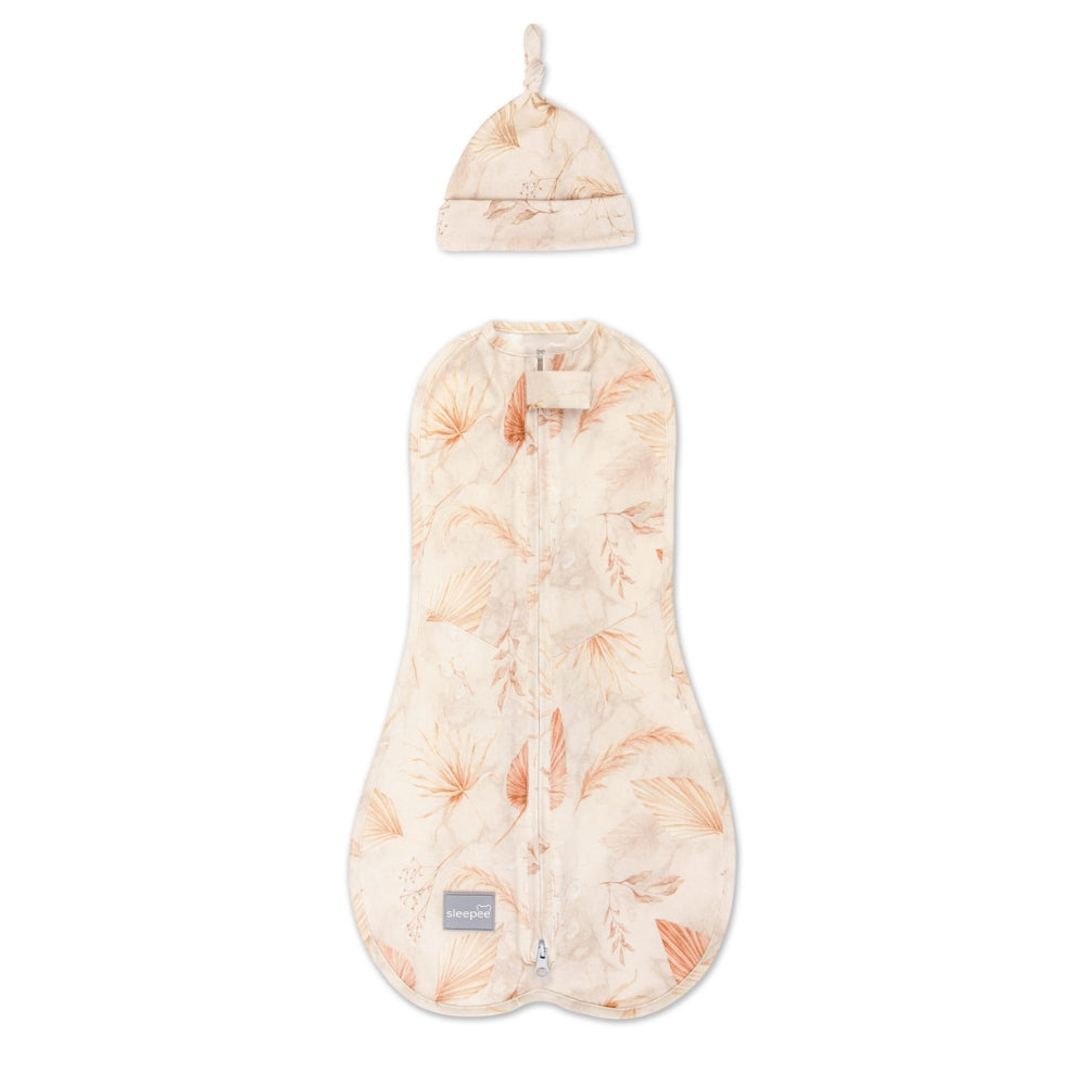 Sleepee baby wrap first step with beanie bohemian sand (Dětská zavinovačka s čepičkou)