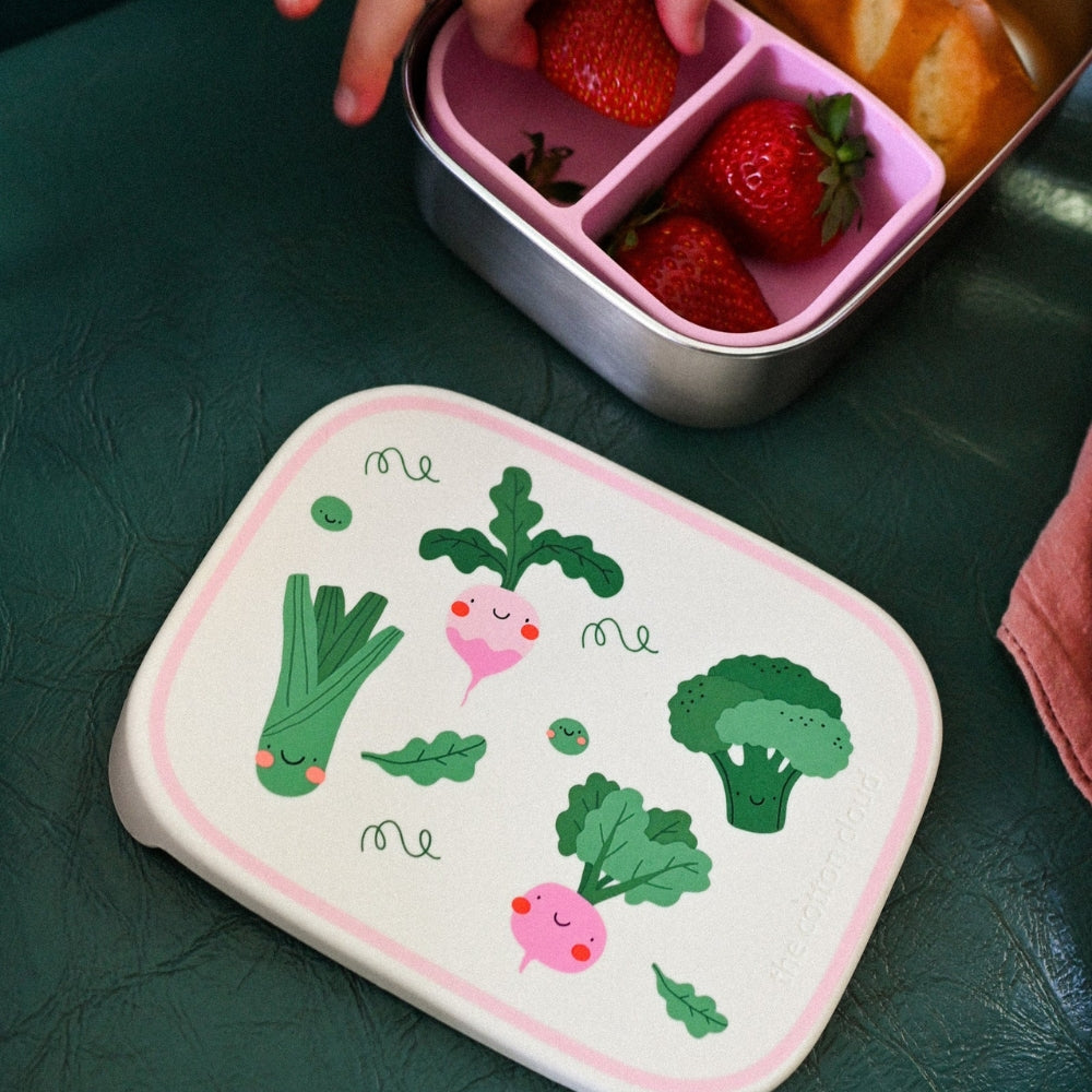 The Cotton Cloud Dětský box na svačinu z nerezové oceli s odnímatelnými přepážkami Veggie Pals od společnosti