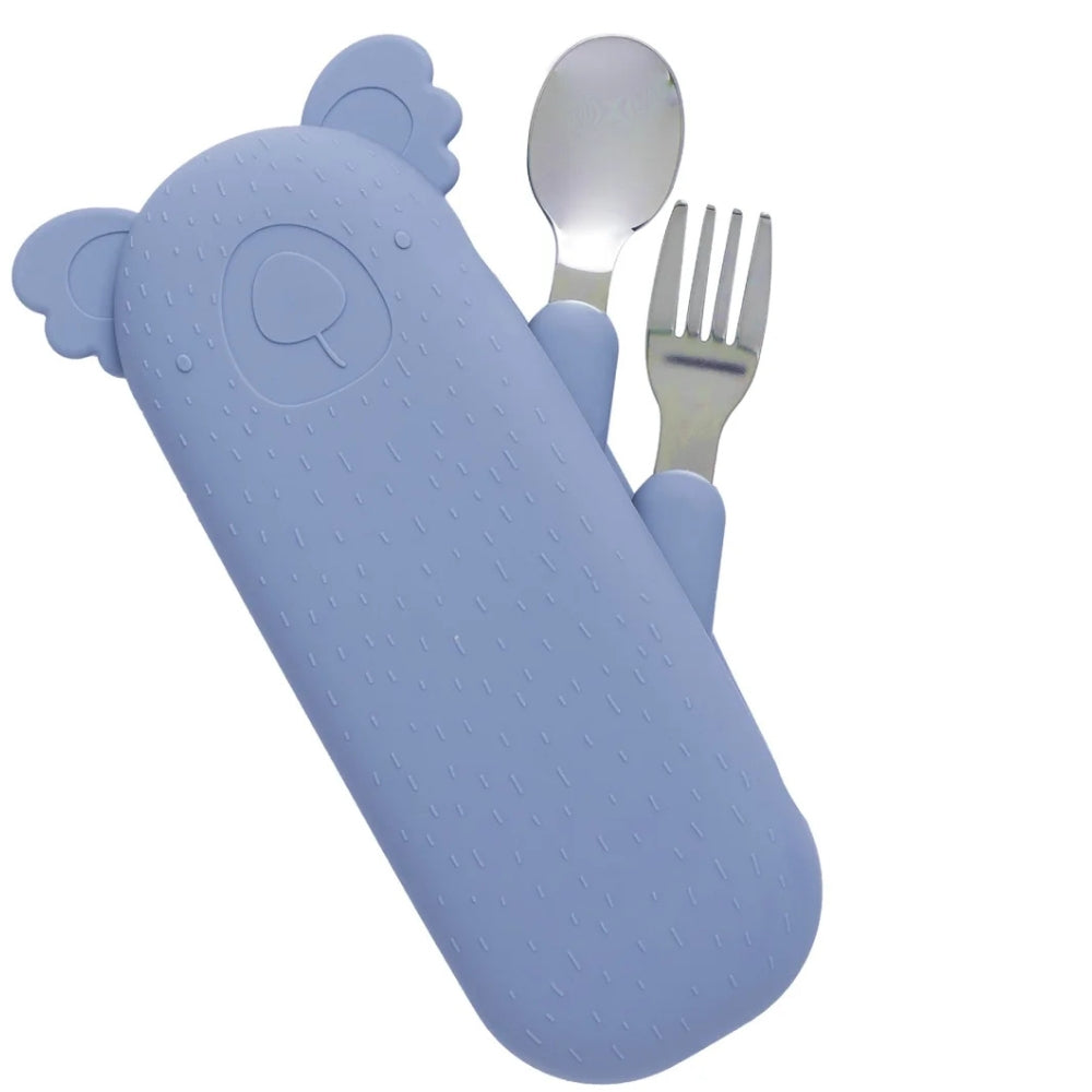The Cotton Cloud Dětský příbor v pouzdře Zoe the Koala v barvě Fog Blue