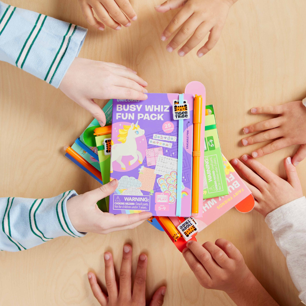 Jedná se o praktický sešit plný bludišť, hádanek, slovních her a logických hádanek, který vás vtáhne na dlouhé chvíle a zároveň podpoří kreativitu vašeho dítěte. Sada od Tiger Tribe obsahuje stíratelný fix, takže se k úkolům můžete donekonečna vracet, a arch se samolepkami hru ještě více zpestří.