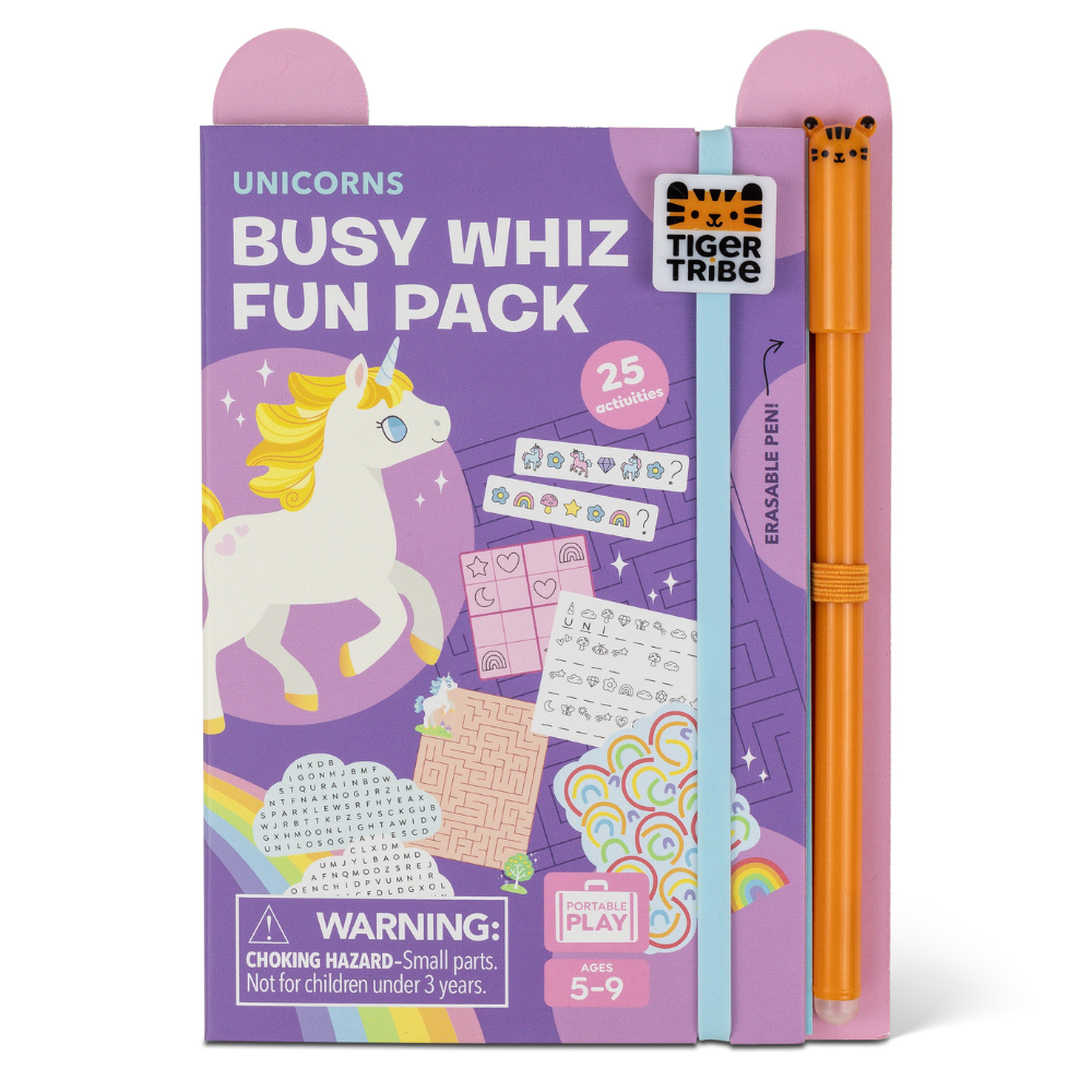 Zábavná knížka Jednorožci od Tiger Tribe je praktický balíček aktivit, který ušetří dlouhé cesty a deštivé dny.
