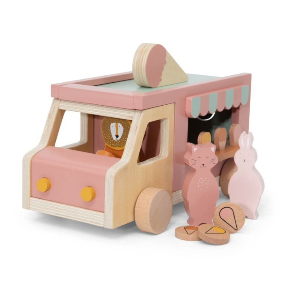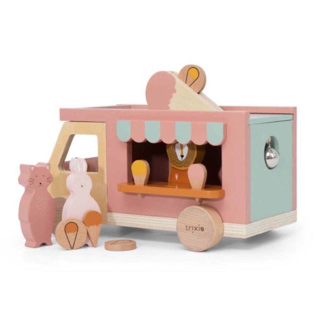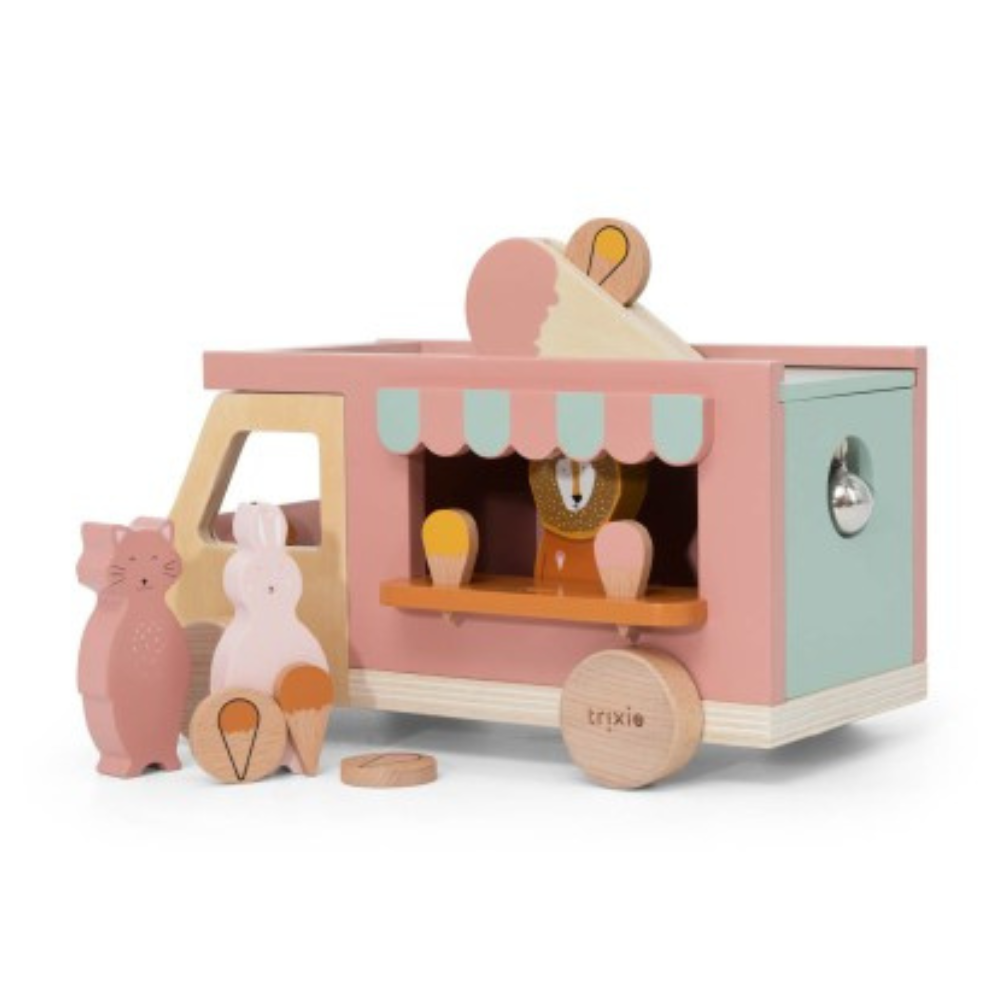 Dřevěný náklaďák je připraven na každodenní kreativní "zmrzlinová" dobrodružství. Tato hračka Trixie se skvěle hodí do domácích divadel, obchodů a scének s oblíbenými postavičkami.