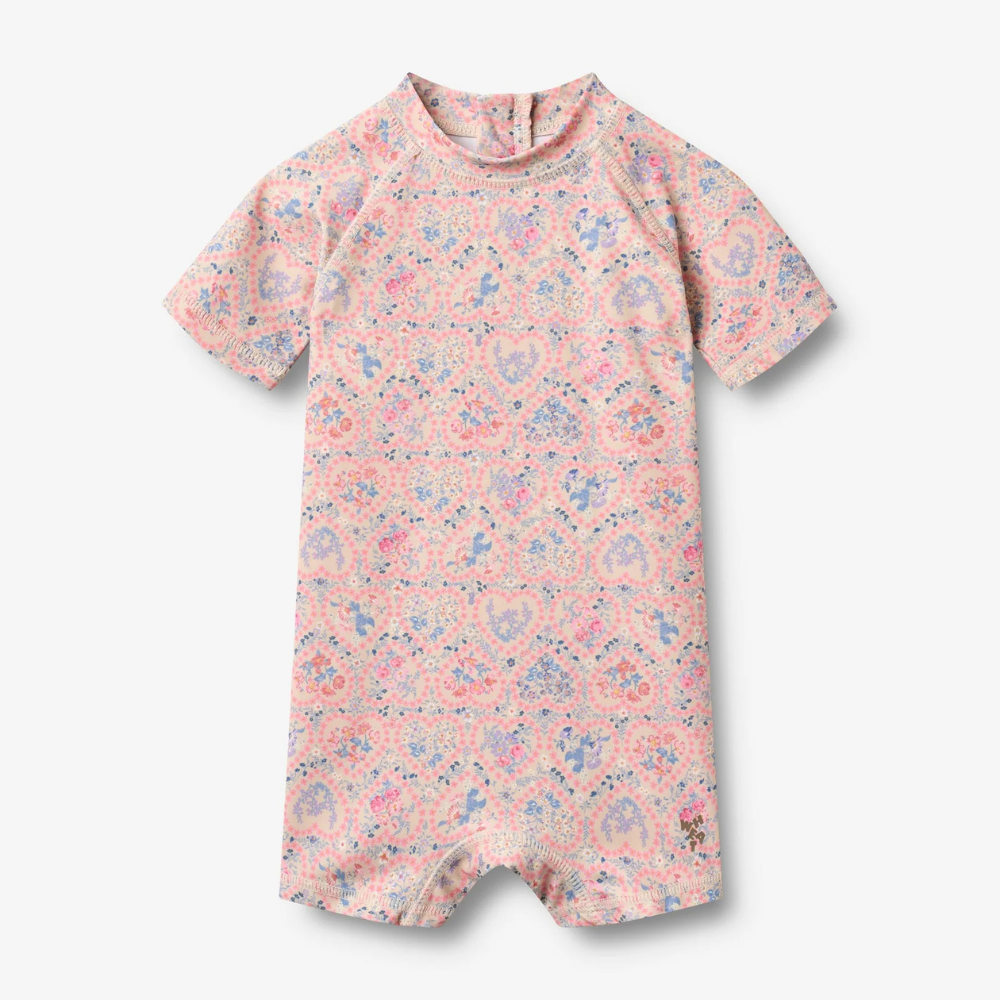 Wheat Dětské plavky s krátkým rukávem Cas pink heart flowers