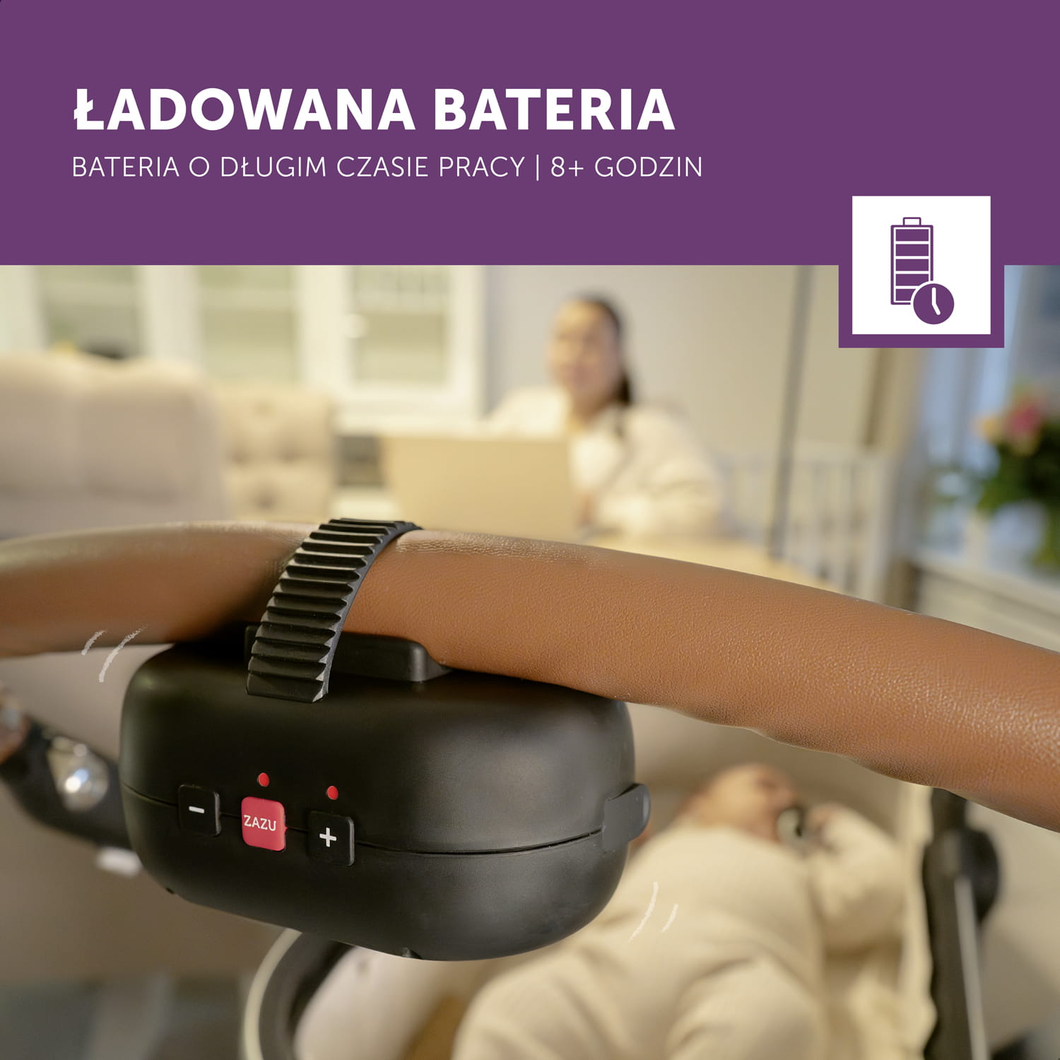 Pro zahájení houpání stačí stisknout spínač a houpátko Robby bude kočárek jemně houpat po dobu 40 minut.